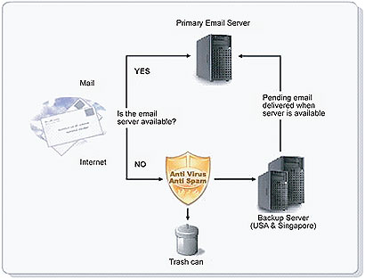 If the primary mail server is unavailable, the backup email server